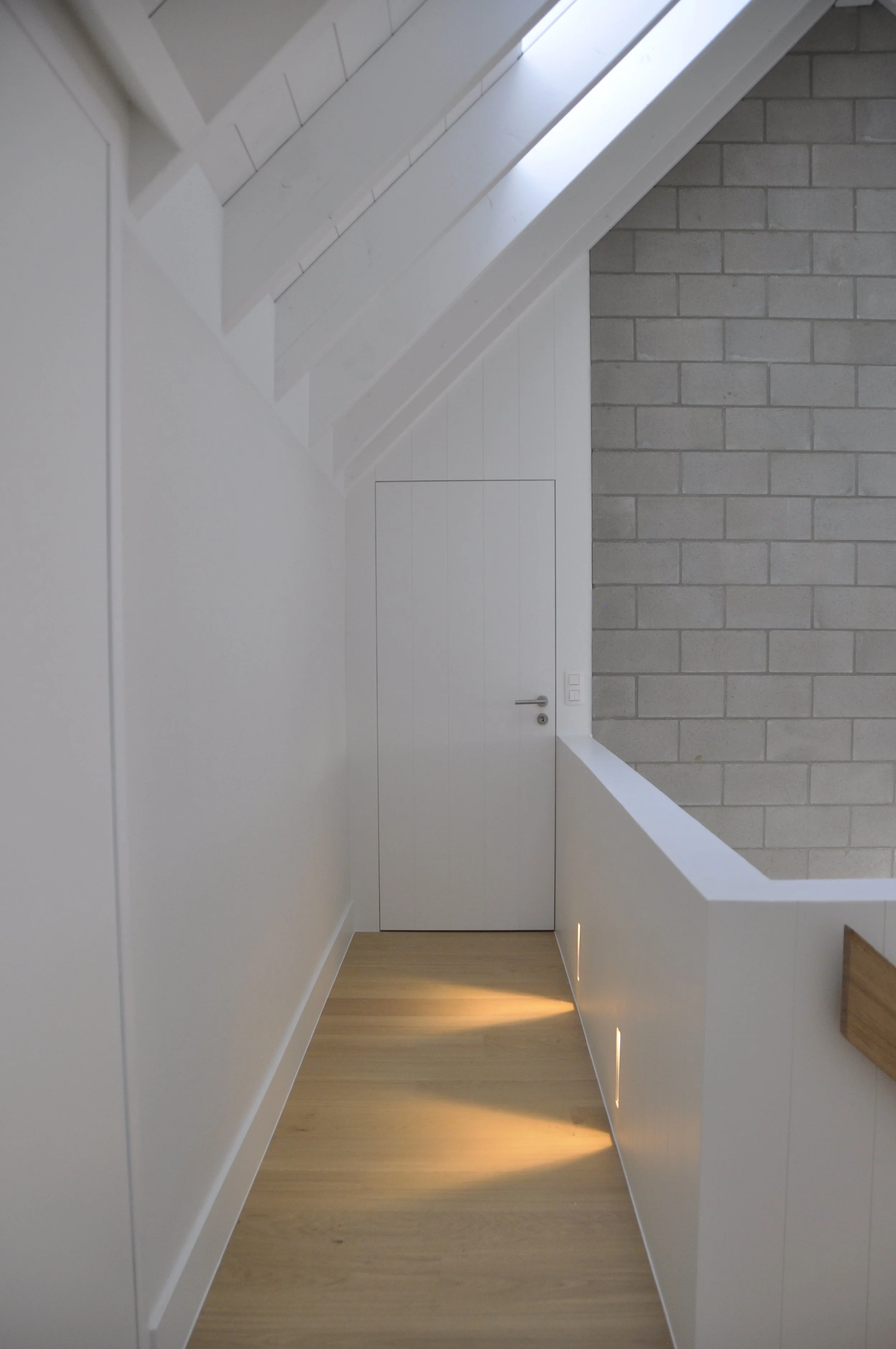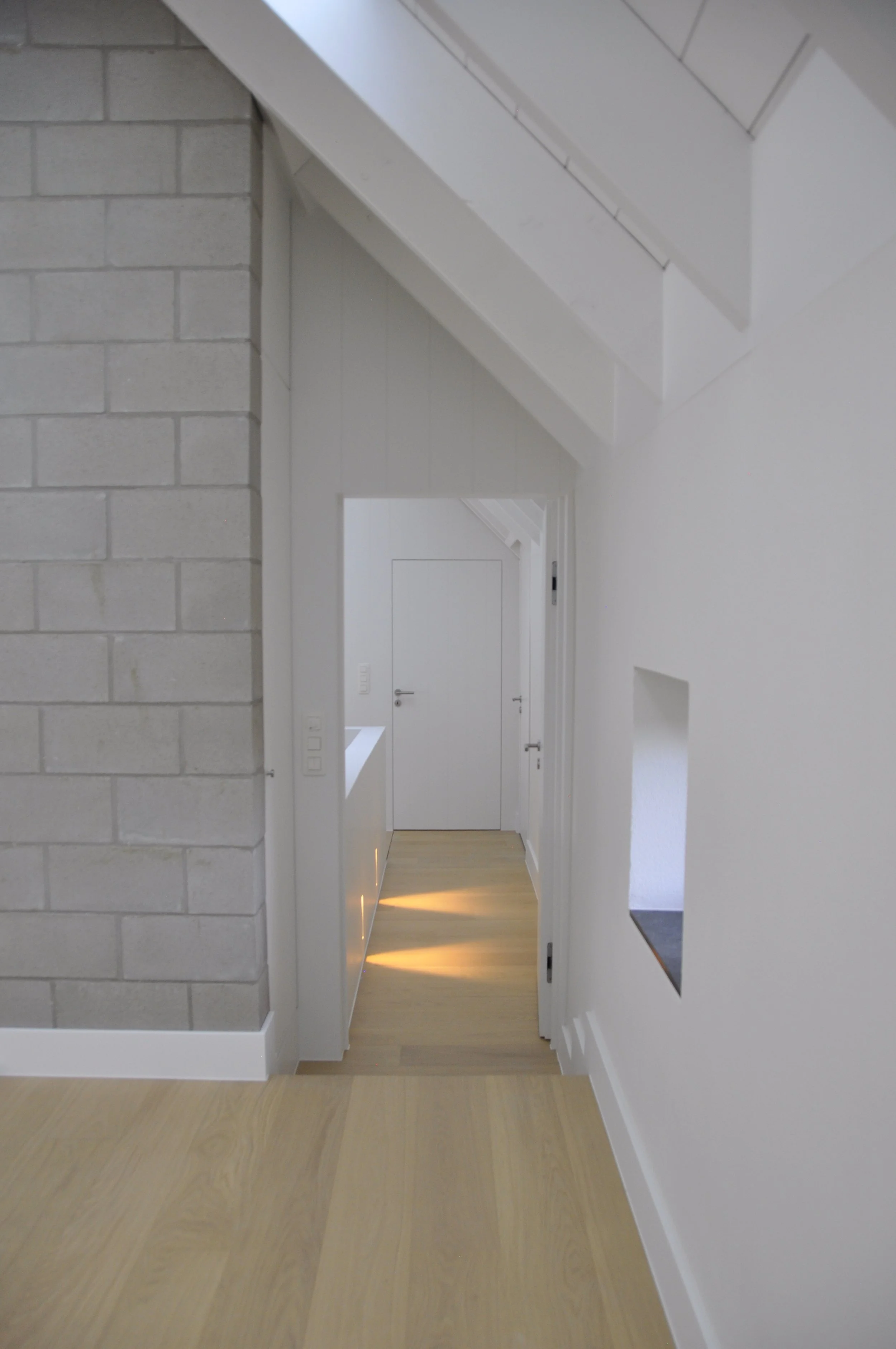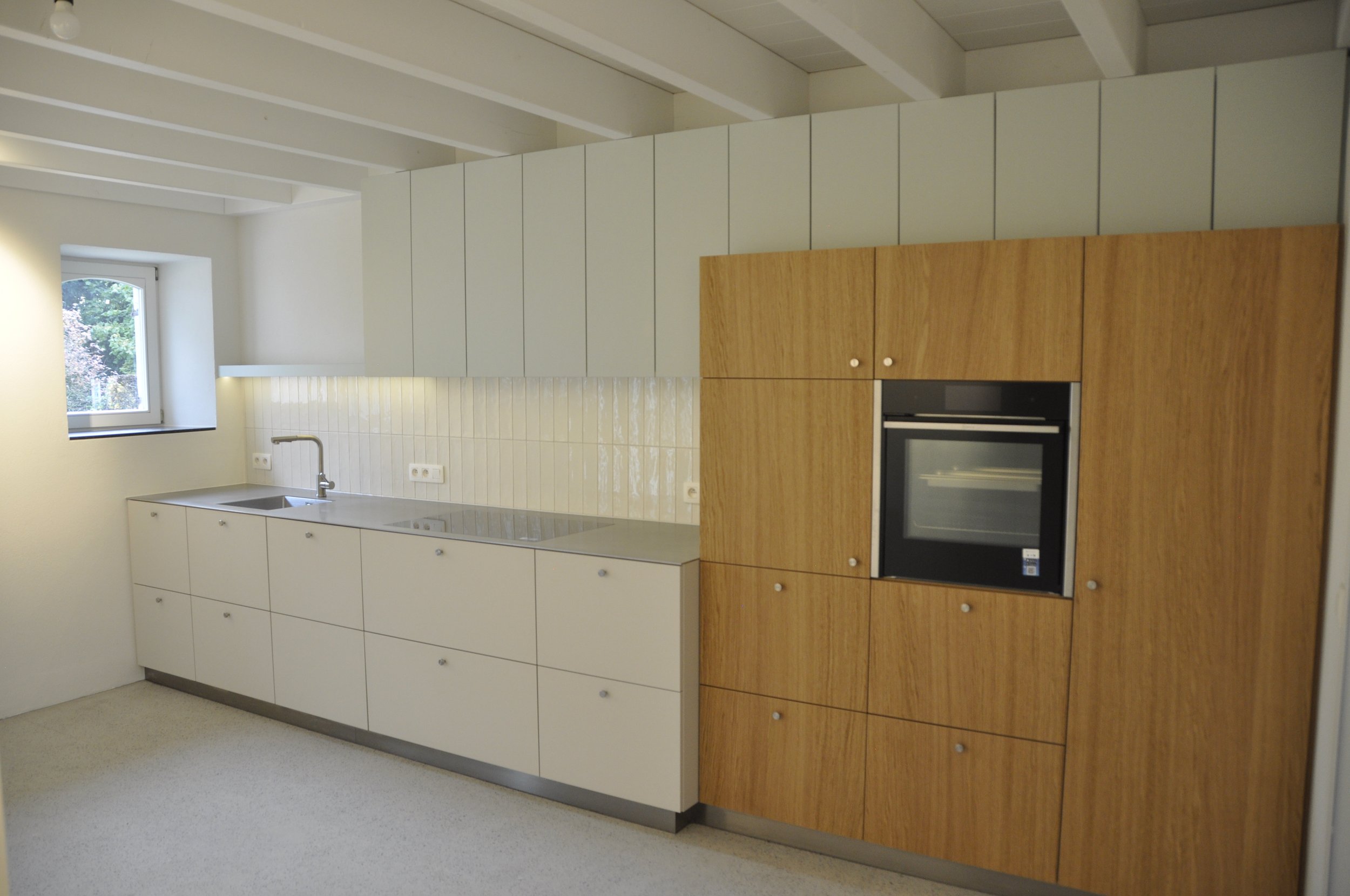Dieses kompakte Bruchsteinhaus ist Teil eines typischen, ostbelgischen Bruchsteinhofes. Es liegt in der ländlichen Peripherie, eingebettet in Obstgärten und Wiesenlandschaften. Aufgrund eines jahrzentelangen Sanierungsstaus und einer maroden Bausubstuanz musste das Gebäude entkernt werden. Um zeitgenösischen Anforderungen an Komfort gerecht zu werden wurde dem historischen Ensemble ein zweigeschossiger Anbau hinzugefügt. Das Konzept des Hauses sieht dabei eine Zweiteilung des Hauses zwischen modernem Anbau und rustikalem Haupthaus vor. Das Haupthaus beherbergt, Wohnräume und Schlafzimmer und wurde unter berücksichtigung lokaler Bautraditionen ausgeführt. Der Anbau beherbergt funktionale Räume und wurde mit modernen Materialien und Bauweisen ausgeführt. Diese Entscheidung wurde bis ins Detail ausgearbeitet und ist auch bei der Fassadengestaltung zum, tragen gekommen.